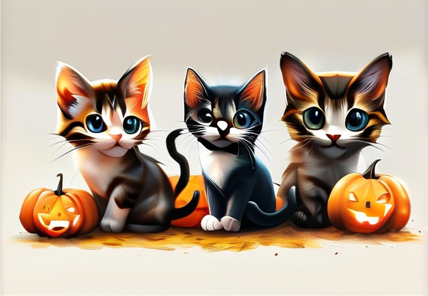 - **场景适配方案**:电商促销海报适合「猫咪捧南瓜灯」基础模板,教育机构可选用「猫头鹰与南瓜」知性风变体